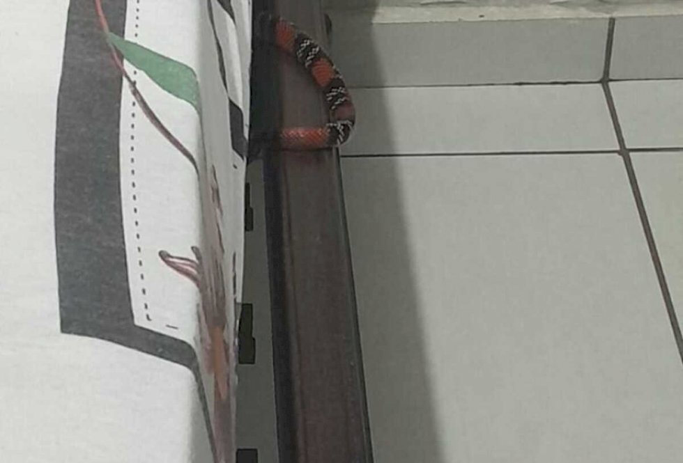 Uma cobra coral foi encontrada em cima da cama de uma casa em Dourados. O caso aconteceu na noite deste sábado (20).