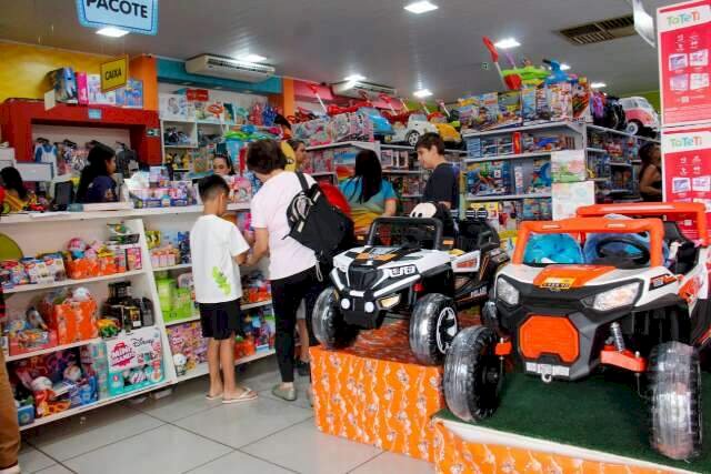 Dia das Crianças deve movimentar R$ 352 milhões em Mato Grosso do Sul, segundo a Fecomércio-MS. A maior parte do valor, R$ 228 milhões, será destinada à compra de presentes, com gasto médio de R$ 206. Brinquedos lideram as preferências (48%), seguidos por roupas (31%) e calçados (19%). Filhos são os mais presenteados (51%). Lojas físicas são a principal opção de compra (72%), com o Centro da cidade como local preferido (61%). Descontos à vista são o maior atrativo para os consumidores (59%). Além das compras, 69% pretendem comemorar a data, com atividades em família (32%), passeios (14%) e saídas para comer (13%).
