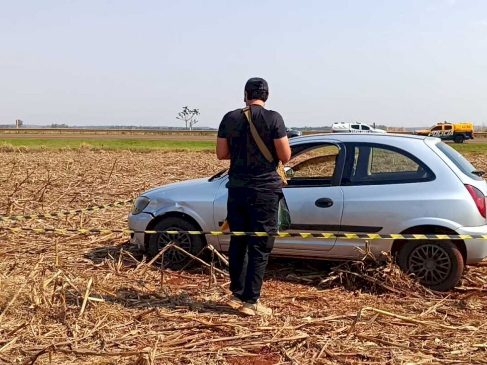 Ferido, ele acabou perdendo o controle de direção, fazendo o GM Celta que estavam parar em área de plantio, distante alguns metros da rodovia.