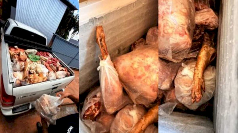 Fiscalização em estabelecimentos comerciais de Jaraguari, município a aproximadamente 46 quilômetros de Campo Grande, aprendeu mais de 900 quilos de carnes impróprias para consumo nesta sexta-feira (24).