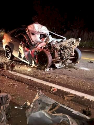 Motorista morre e carro vira sucata ao colidir na traseira de bitrem na MS-267