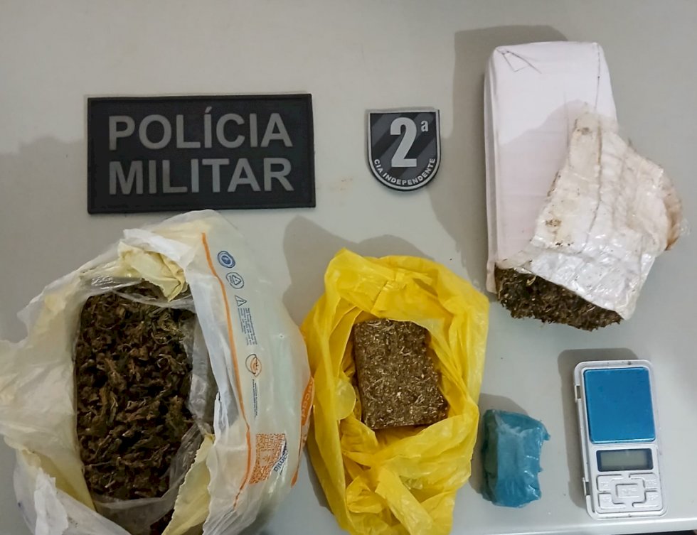 Durante a abordagem e a revista pessoal, os militares encontraram na bolsa da adolescente 921 gramas de substância análoga à maconha, além de uma balança de precisão, evidenciando a possível comercialização do entorpecente.