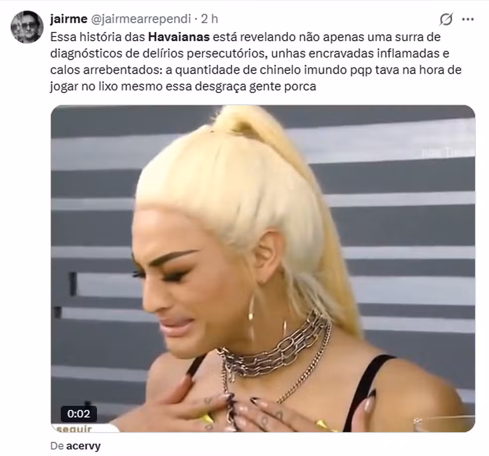 O deputado federal Nikolas Ferreira (PL-MG), por exemplo, publicou no X (antigo Twitter): “Havaianas, nem todo mundo agora vai usar” — fazendo uma alusão ao slogan da marca de sandálias.