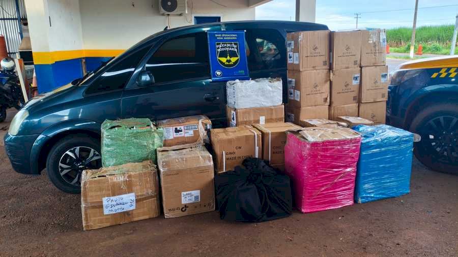 Ao ser abordado, o condutor inicialmente apresentou versão contraditória, mas posteriormente confirmou que transportava mercadorias oriundas do Paraguai. Durante vistoria veicular, foram localizadas diversas caixas contendo produtos característicos de contrabando e descaminho, entre eles: