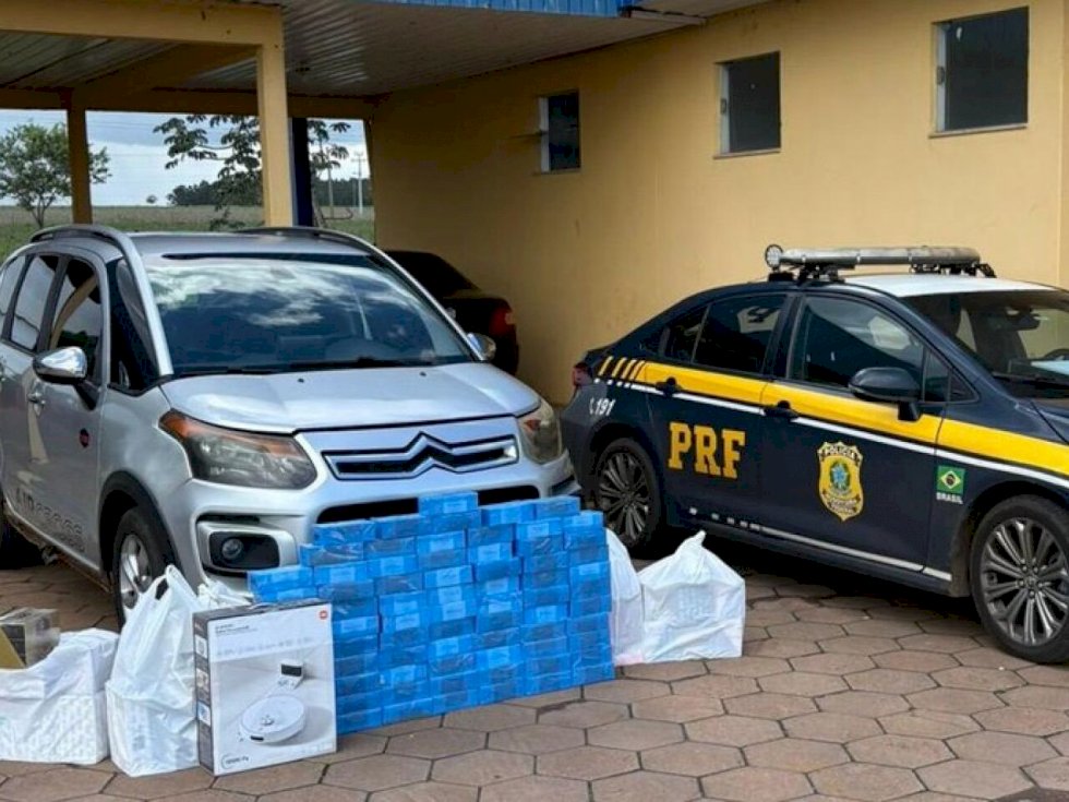 O flagrante ocorreu após abordagem na BR-267. O homem conduzia um Citroen/C3 preparado com um compartimento oculto encontrado pelos policiais. No veículo foram encontrados 75 celulares e alguns cosméticos.