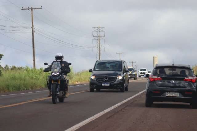 A saída foi marcada por um forte esquema de segurança. Cerca de seis viaturas da Polícia Rodoviária Federal (PRF) fazem a escolta do comboio em motocicletas, formado por vans pretas e pratas que transportam integrantes e equipe.
