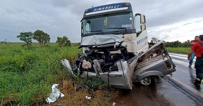 Motorista ainda não identificado morreu no final da manhã desta terça-feira (18) em uma colisão frontal entre caminhonete e carreta na BR-267, entre o Distrito Nova Casa Verde e a cidade de Nova Alvorada do Sul.