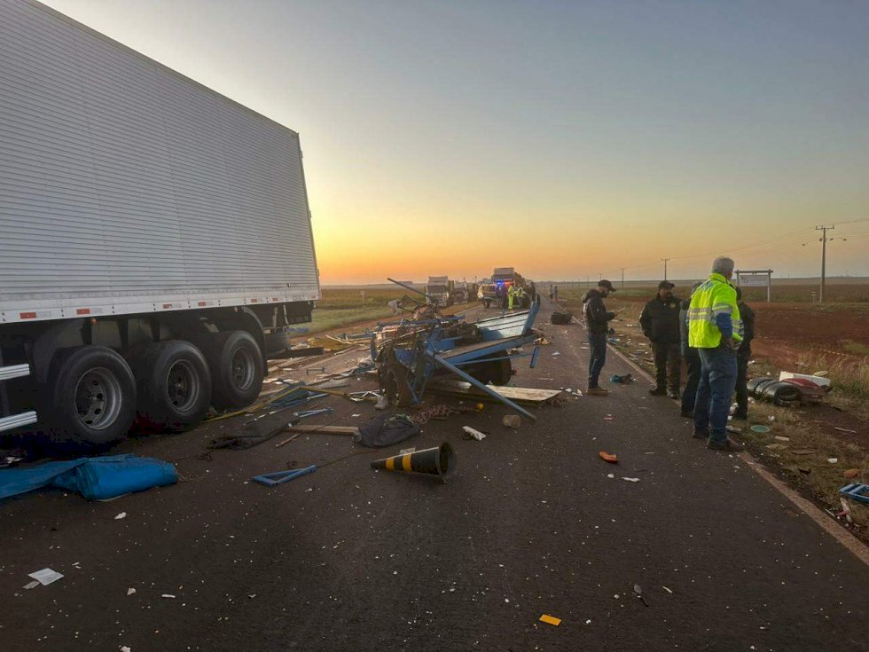 A carretinha acabou ficando sobre a pista e foi atingida por uma carreta que seguia logo atrás da caminhonete. Todo o material e objetos acabaram se esparramando. O motorista da carreta não se feriu e parou o veículo na lateral da estrada. O trânsito segue fechado no local em ambos os sentidos da rodovia.