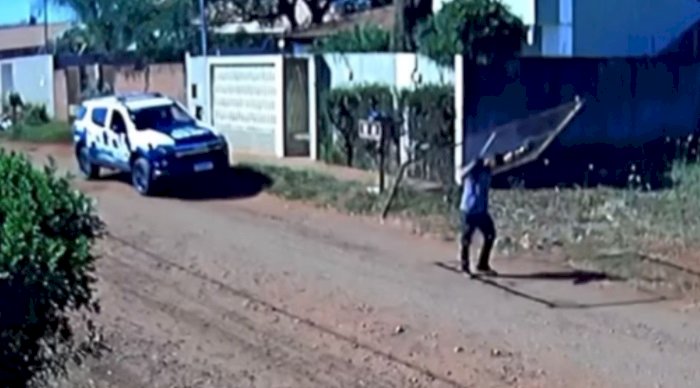 Ladrão 'desiste' de roubar portão após dar de cara com viatura da PM em MS