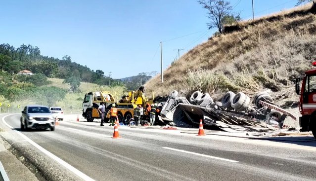 Conforme apurado pelo portal Poços.com, o acidente aconteceu por volta das 12h, na altura do KM-243. O veículo sul-mato-grossense estava carregado com cimento e descia o trecho no sentido a Águas da Prata quando perdeu o controle em uma curva, subiu no barranco e capotou. A carga se espalhou pela pista.