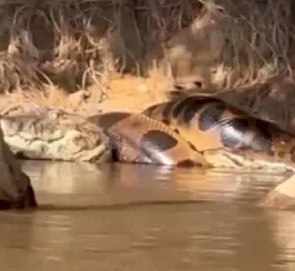 Sucuri gigante dá ‘abraço da morte’ em jacaré em rio de Mato Grosso do Sul