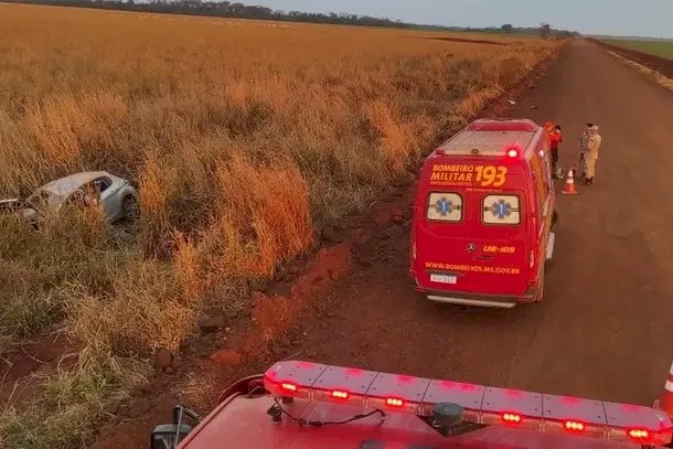 Mulher morre e dois ficam feridos após carro capotar na MS-465 em Rio Brilhante