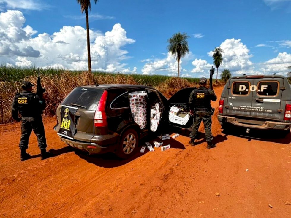 Policiais militares do DOF (Departamento de Operações de Fronteira) apreenderam, na tarde de domingo (8), um veículo Honda CR-V carregado com 50 caixas de cigarros contrabandeados do Paraguai. A ação ocorreu na rodovia MS-465, conhecida como Estrada do Suez, na região de Rio Brilhante.
