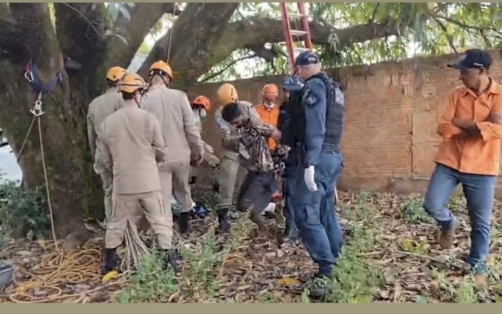 Ainda segundo o bombeiro, o rapaz estava debilitado após permanecer por horas na árvore e apresentava sinais de cansaço.