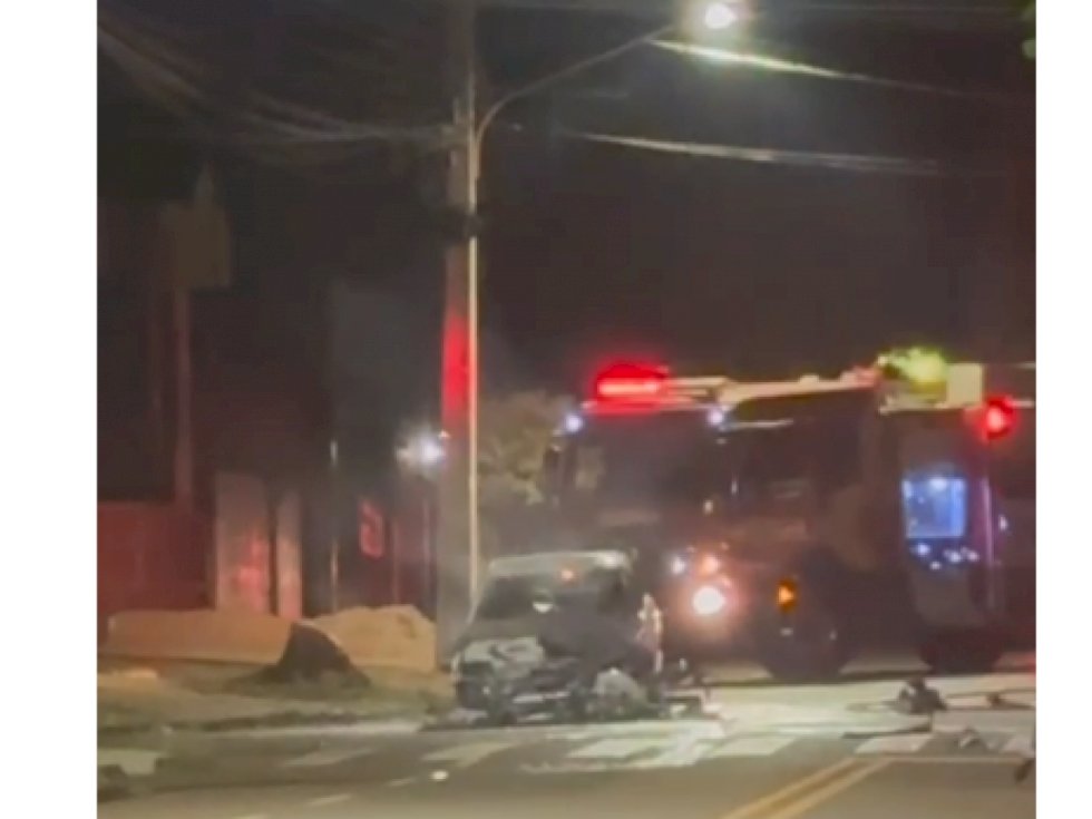 Um acidente envolvendo um carro e uma motocicleta, deixaram os dois veículos incendiados após uma colisão. O acidente aconteceu na noite de quarta-feira (18), no cruzamento das ruas Rio Brilhante e Monte Castelo, em Dourados.