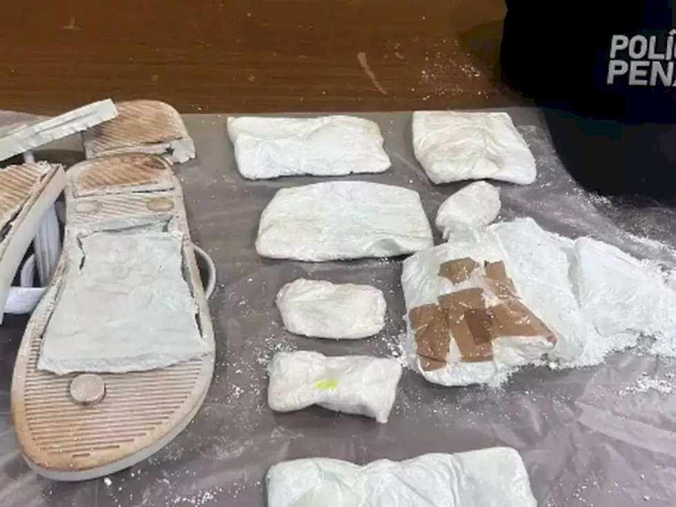 Ao todo, foram apreendidos cerca de 320 gramas da droga, distribuídos em oito invólucros de cocaína. As embalagens estavam ocultas nos chinelos, no sutiã, no cós da calça e também afixados às costas da mulher.
