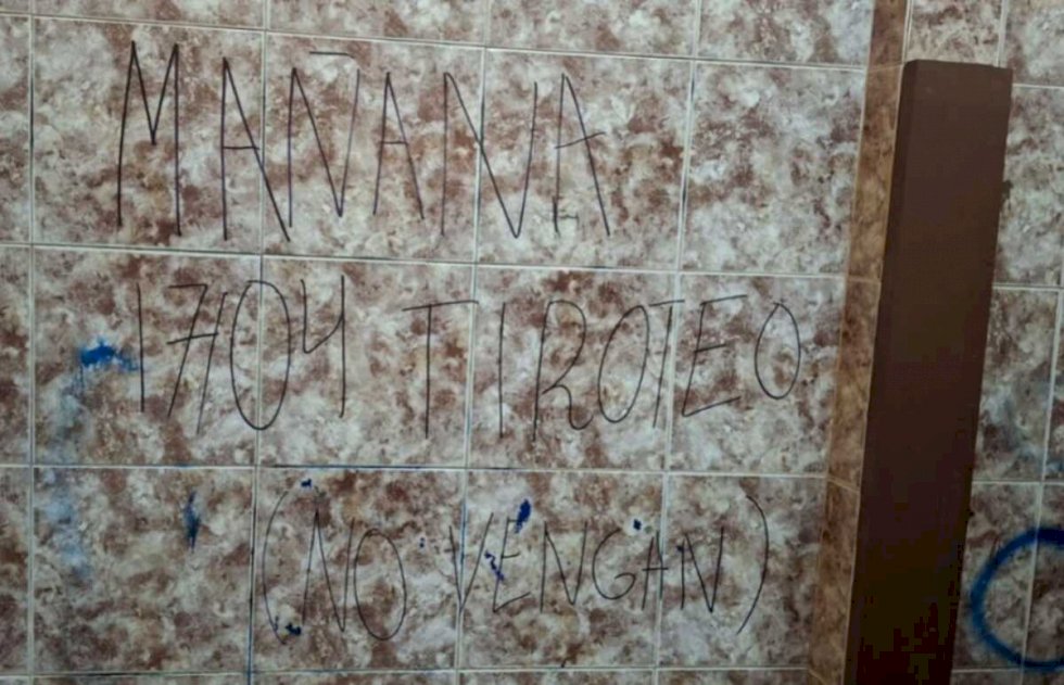 O alerta foi acionado no CRE (Centro Regional de Educação) de Pedro Juan Caballero depois que os alunos encontraram uma mensagem na parede de um banheiro que dizia: 'Amanhã, 17/04, haverá um tiroteio, não venham'.